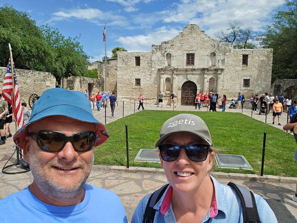 The next weekend we spent a day in downtown San Antonio. I clearly didn’t do any research on San Antonio as I thought it was a relatively small regional city. It’s actually an enormous city with 2.4 million people in the greater San Antonio area. The freeways in this city are something else – those crazy fly-over highways that are hundreds of feet in the air and I was legitimately frightened towing the trailer over them. The downtown area of San Antonio has a lovely riverwalk lined with bars and restaurants, and the walking trail continues along the river out of the city which we enjoyed for a couple of hours with the dogs. You have probably heard of “The Alamo” where the Texan army was defeated by the Mexicans in 1836. It was a former mission but is now a museum and memorial to that battle loss, located in downtown San Antonio .