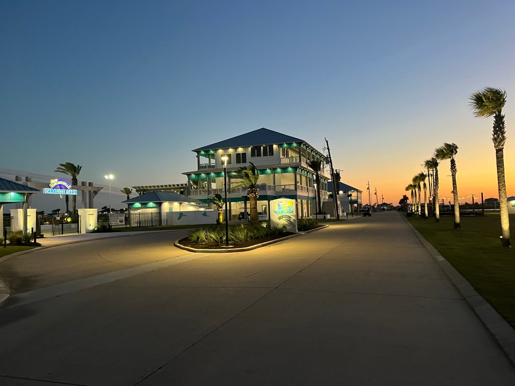 Camp Margaritaville on the Bolivar Peninsula was a ton of fun for the week. It’s a beautiful RV resort – one of the best we’ve stayed at – and has beautiful facilities and grounds, spacious sites and walking access to the “beach” (more on that below).