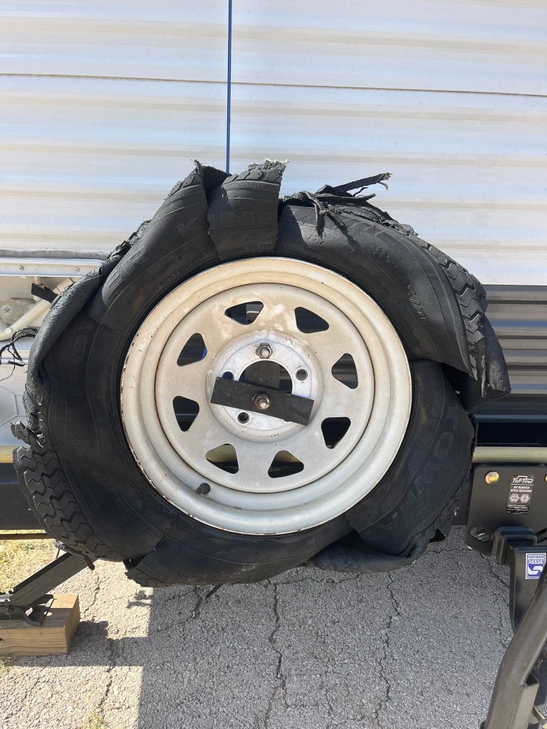 We pulled into the park and were checking-in when we found we had another flat on the trailer. Different flat to the one we changed in San Antonio. Luckily it seemed to have given up the ghost not far from the entrance to the park so we made it to our site without having to stop and change it.