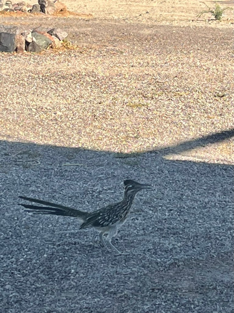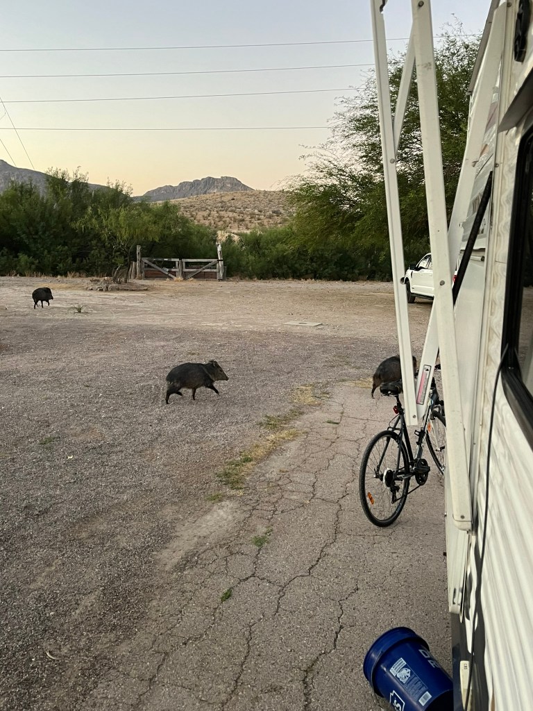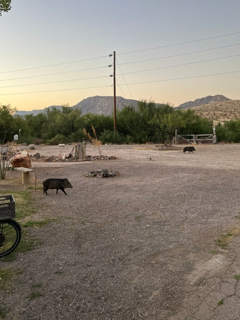 The first morning at Lajitas I woke to the sound of something rummaging through our campsite and caught these guys helping themselves to the garbage, the dogs water and the grill! They are javelinas (not pigs!) although they are a type of peccary related to pigs found mainly in Central and South America and some southern parts of the USA. We also saw our first road runner here – he was cute and cheeky!